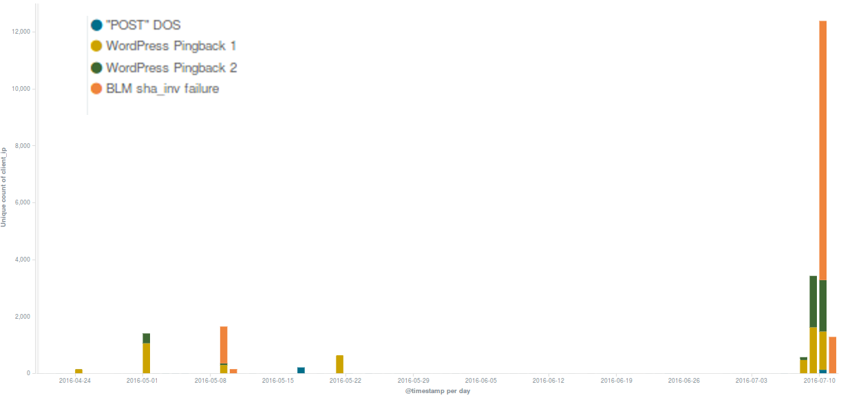 The Black Lives Matter website had already been attacked in May using a similar method of a WordPress Pingback reflective attack and similarly an unusually high percentage of bots from the US.