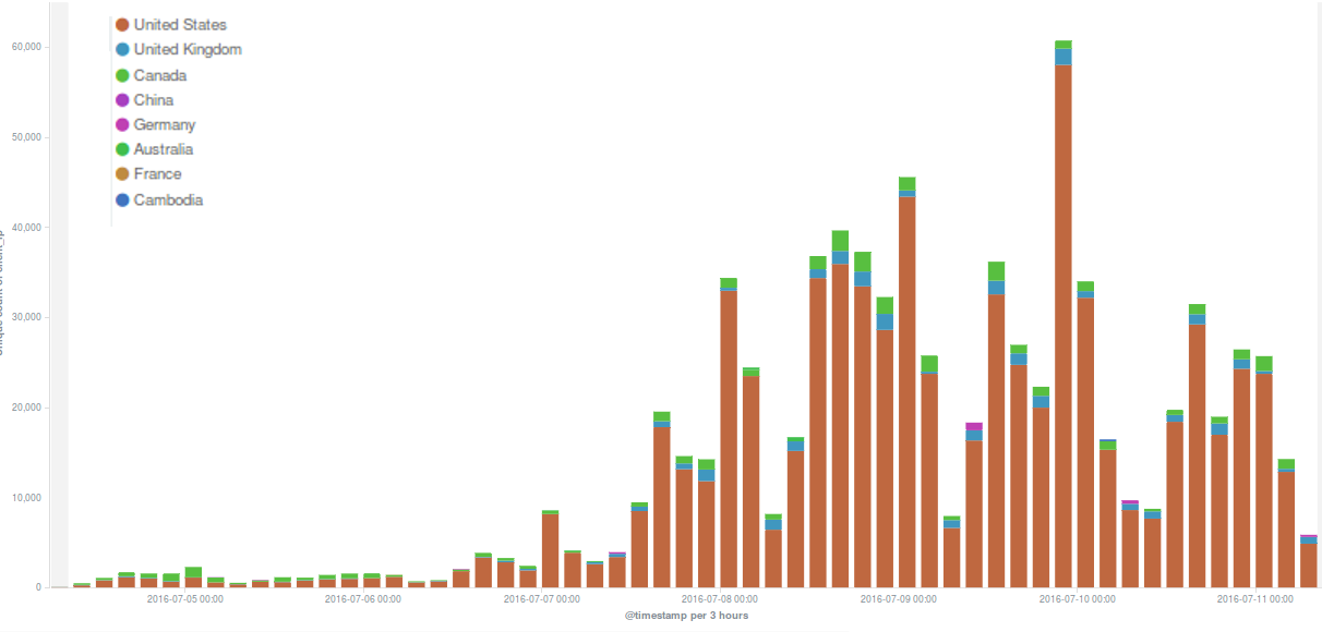Last week and throughout the weekend, Deflect helped mitigate several DDoS attack bursts against the official Black Lives Matter website. At current estimates over 12,000 bots pounded the website just over 35 million times in 24 hours. An unusual trait of this attack was the prevalence of  malicious connections originating from the US. An in-depth analytic report will follow this prima facie bulletin.