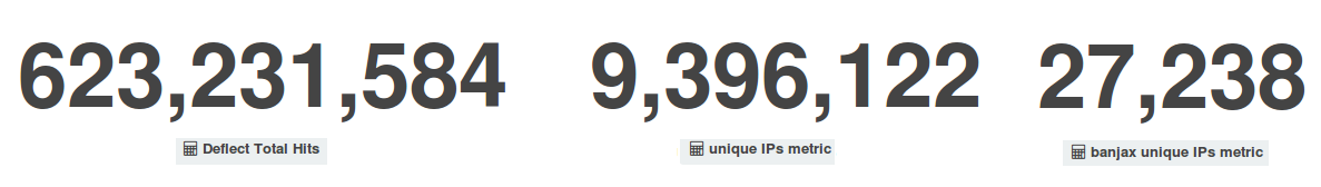 Overall, the Deflect network served 623.2 million pages to 9.3 million unique visitors and our banning mechanism banned 27,238 bots. Let’s break up these statistics to put the figures in context and give them meaning: