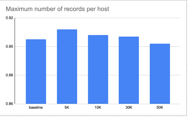 We had to find a balance in the amount of data we feed to the training pipeline from each client. On the one hand, we wanted to equalize the number of records from each client, but on the other hand, high traffic clients provided much more valuable incident information. We decided to use stratified sampling of training datasets with a single parameter: the maximum number of samples per host.