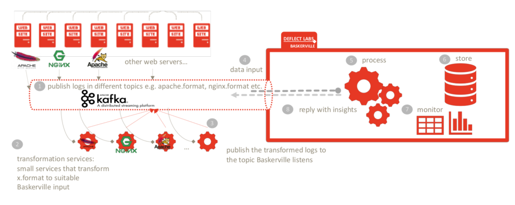 The initial design of Baskerville was created with the assumption that Baskerville will be running under Deflect as an analytics engine, to aid the already in place rule-based attack detection and mitigation mechanism. However, the needs changed as it became necessary to open up Baskerville’s prediction to other users and make our insights available to them.